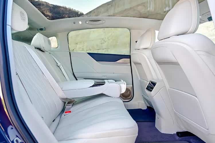 当然,豪华的核心在于触感。至境L7的座椅采用了百万级豪车才会使用的“云感悬浮层”技术,简单来说就是在一张座椅内部,用空气弹簧和高密度记忆海绵进行组合,其目的就是让不同体型、不同坐姿的乘客都能找到宛如置身“云端”的支撑与包裹,而这种“云感”不只存在于前排,后排座椅同样承袭了这份基因,同时,顶配车型的前后排座椅均配备了加热、通风和按摩功能。