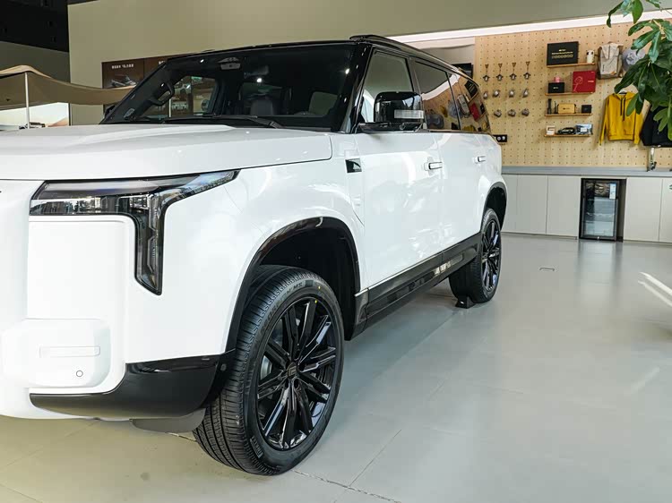 在车身形态上,它采用了比理想和问界更硬朗的“方盒子”设计语言,流露出鲜明的硬派越野气质。