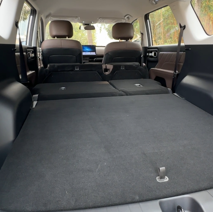 值得一提的是,这款五菱星光560还考虑到了露营模式。大家仔细看,第2排座椅放倒后与后备箱是全平的,车内空间扩展性表现不错。如果偶尔在户外露营,还是比较方便的。