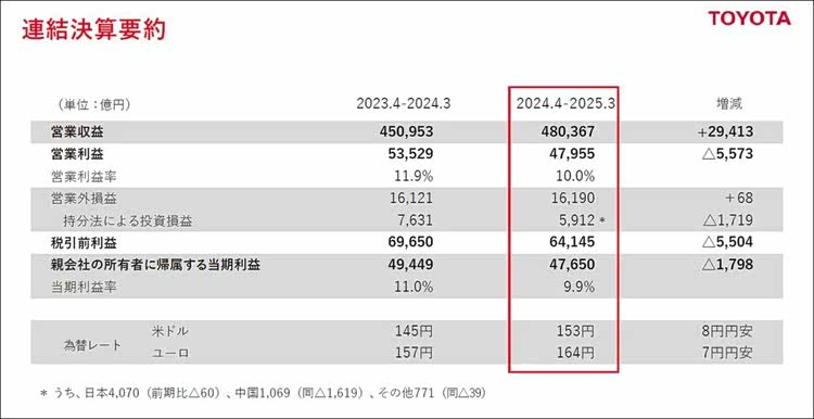 但若将视角转向全球,丰田则呈现出不同的发展态势。2025财年,丰田汽车全球销量达到1011.1万辆,营业收入48.04万亿日元,但营业利润同比下降10.4%。面对全球市场的不确定性,丰田预计2026财年营业利润将进一步回落至3.8万亿日元。