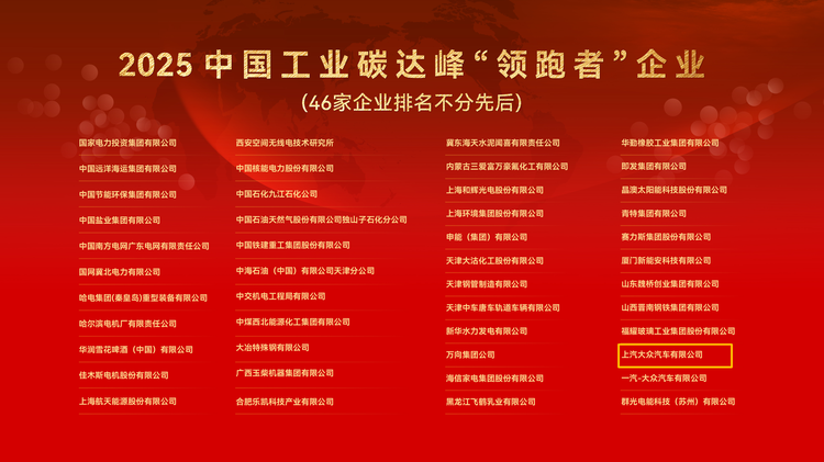 快讯丨上汽大众荣膺2025中国工业碳达峰“领跑者”企业