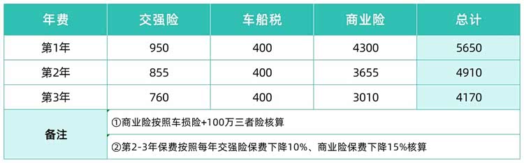 我们以享受12万公里免费保养的非营运首任车主为例,综合三年使用周期内的保险、燃油费用进行测算。首年保险约5600元,若后续两年无出险记录,按每年保费下浮10%—15%估算,三年保险总支出约为1.5万元。燃油费用按年均2万公里计算,三年燃油总支出约为4.5万元。综合保险与燃油两项,三年使用成本总计接近6万元。若计入首年购置税、车船税等一次性费用,整体用车成本与同级合资SUV相差不大。