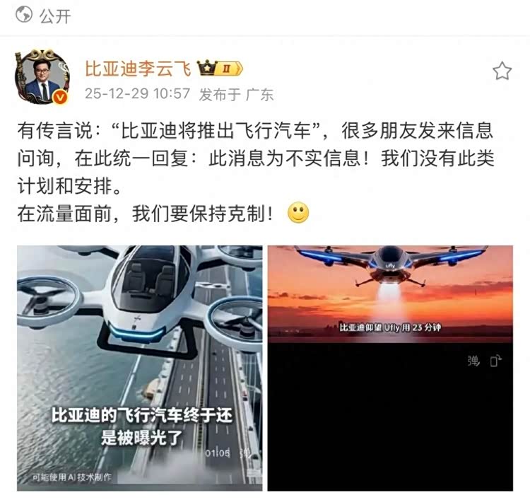 然而,兴奋还没持续多久,比亚迪品牌及公关处总经理李云飞就亲自下场,在社交媒体上祭出了一张“红牌”。