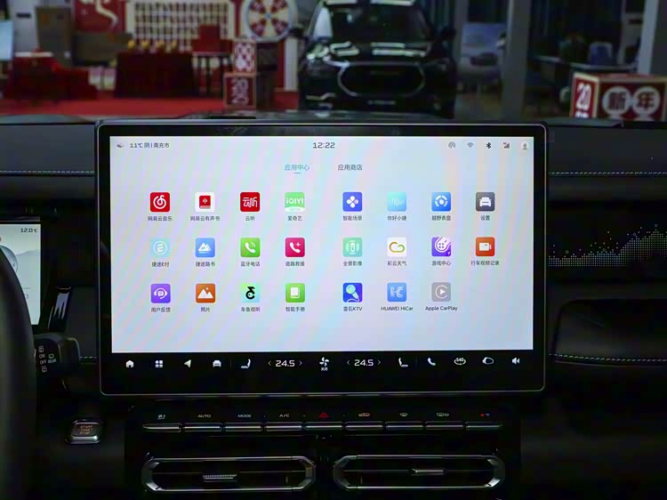 前排布局简洁,挡杆前方是手机置物台,下方有镂空储物空间,副驾驶前方有开放式储物槽,以及一个粗壮的扶手。全系搭载8155车规级芯片,标配CarPlay和HUAWEI HiCar,以及四音区的语音助手。另外,应用商店、远程车控、4G车联网、OTA升级等功能,都一应俱全。