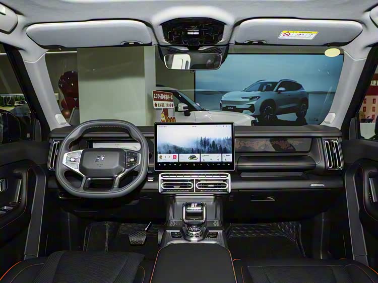 中控台造型平坦,全系10.25英寸液晶仪表搭配15.6英寸中控屏幕(低配12.8英寸)。如果选装了上述的轻越野套装,则包含了10.33英寸副驾驶娱乐屏幕。
