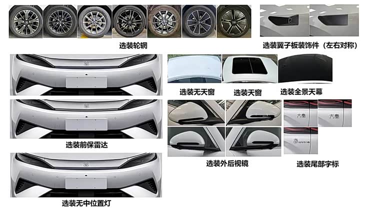 这款车与秦 L EV 风格相近,车身尺寸为 4866/1880/1495mm,轴距 2820mm,仅车长优于秦 L EV。外观采用溜背设计,全新样式前脸搭配熏黑 LED 灯组,前包围立体感强,运动风格鲜明;配备半隐藏式门把手,尾部延续王朝家族经典中国结贯穿尾灯,辨识度拉满。