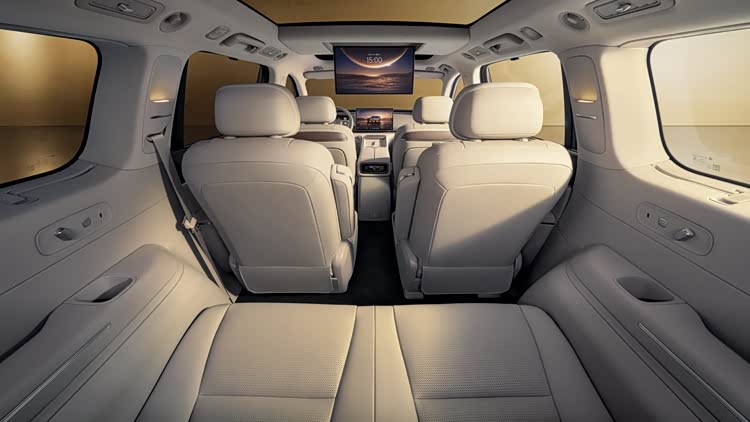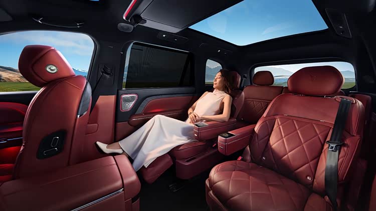 岚图泰山六座“2+2+2”布局与3120毫米的轴距,二排采用AI云舒座椅,支持22向电动调节+零重力模式,支持横向滑动,灵活切换“大四座”布局;三排座椅则打破“应急座椅”定位,通风与加热,便捷出入空间,让乘坐尽显从容与舒适。同时,13升冷暖两用冰箱、21.4英寸吸顶娱乐屏自然也都给到了。