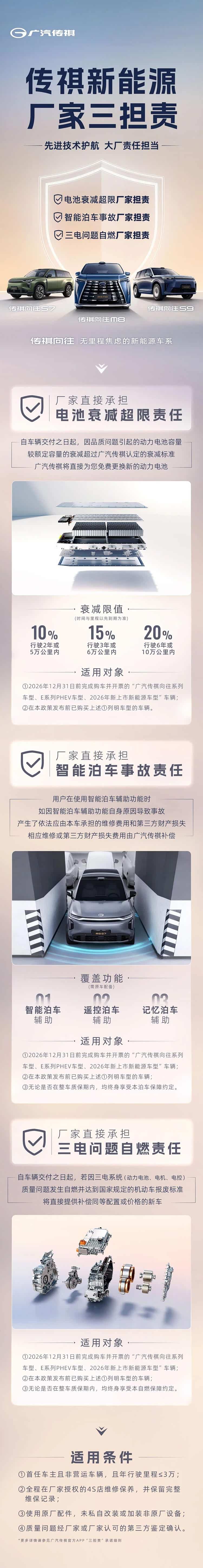 新能源车智能化浪潮下,功能宣传铺天盖地,但真正敢对用户负责的品牌有几个?传祺向往S7给出了不一样的答案。。不久后车辆将迎来OTA升级即将推送的OTA4.0不仅带来,推送全球领先的MomentaR6强化学习大模型,同时,传祺发布的更以行业首创“三担责“政策,也为用户建立起明确、可依赖的责任边界:为用户兜底。智能泊车事故厂家担责、三电问题自燃厂家担责、电池衰减超限厂家担责。——这不是营销话术,而是白纸黑字的售后承诺。在智能时代,技术决定上限,责任决定下限,传祺选择两者并行,既给你天花板级的智能驾驶辅助能力,也守住你最底线的安全感。