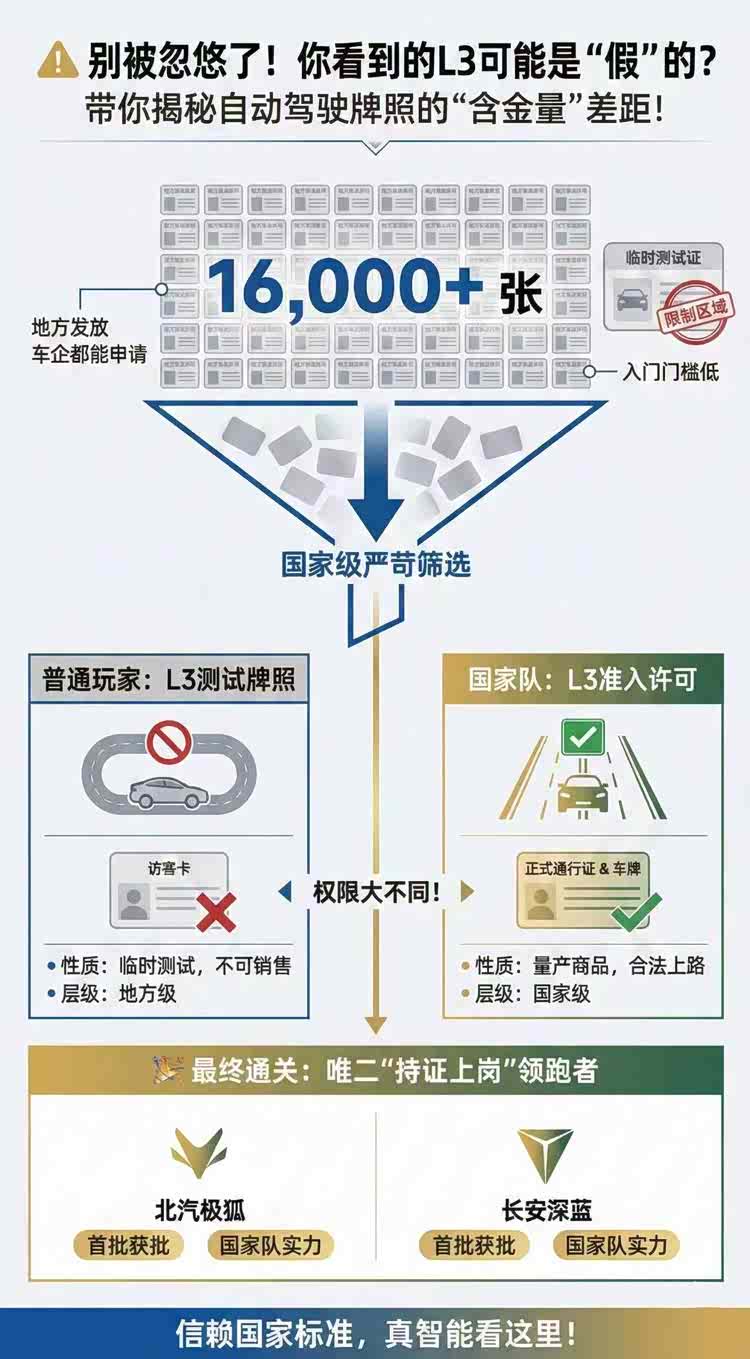 这二者的区别,好比“驾校学员证”与“正式驾驶证”。测试牌照意味着车辆仍在学习、验证阶段;而正式牌照代表该车已通过国家全套考核,是具备完整上路能力的“成熟产品”。极狐阿尔法S(L3版)经历的,正是一场历时四年、层层筛选的“终极考核”。