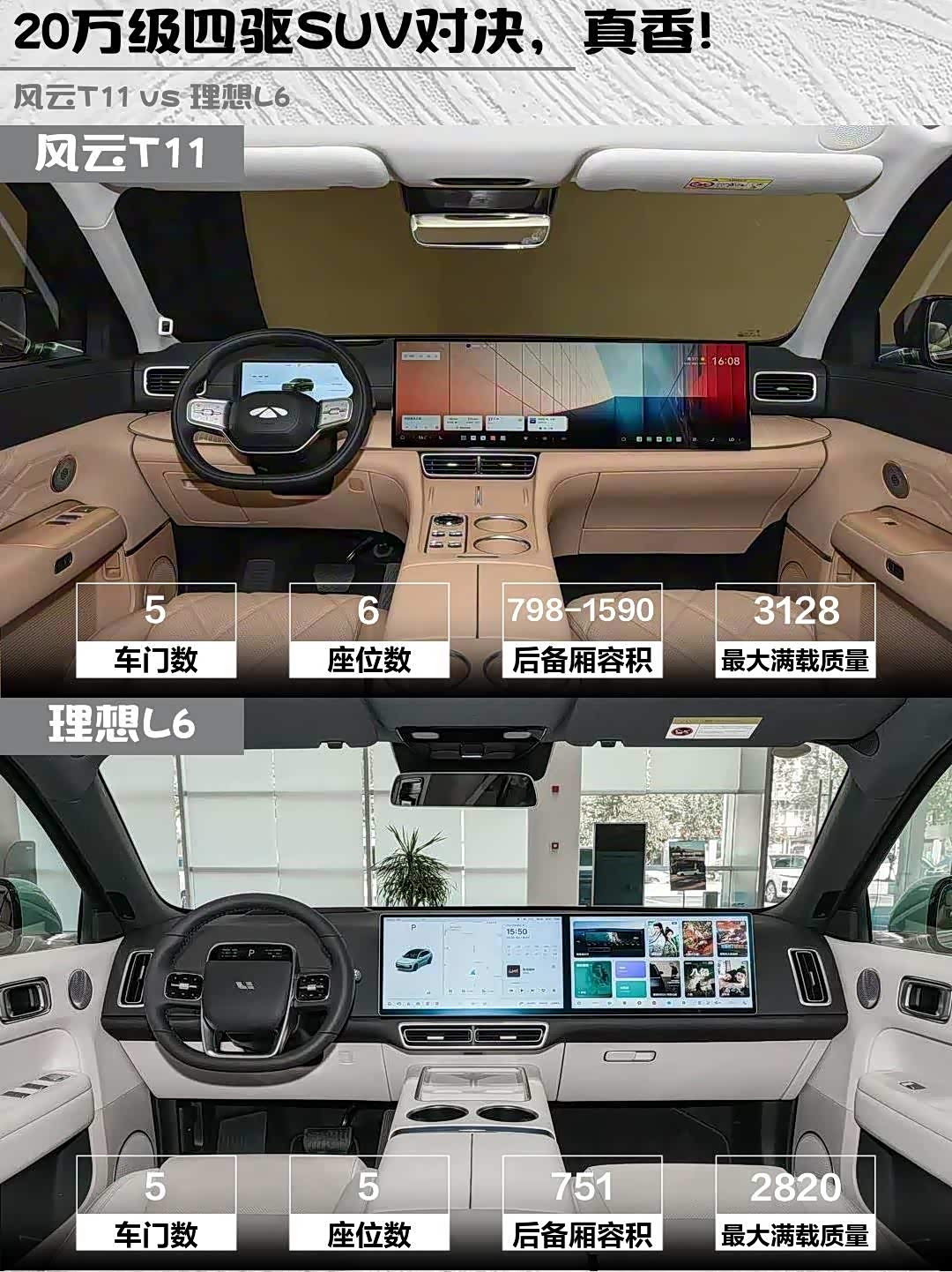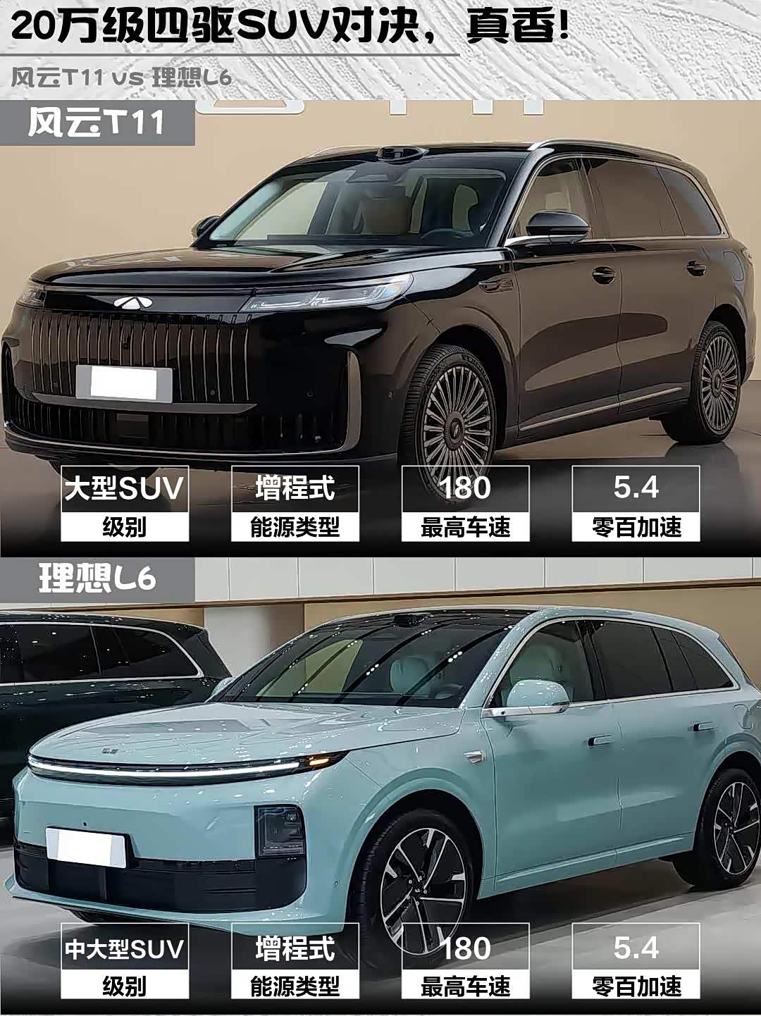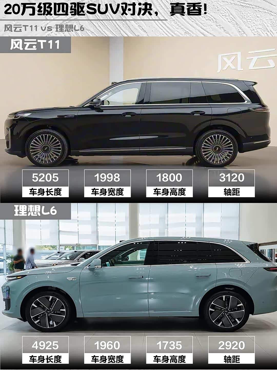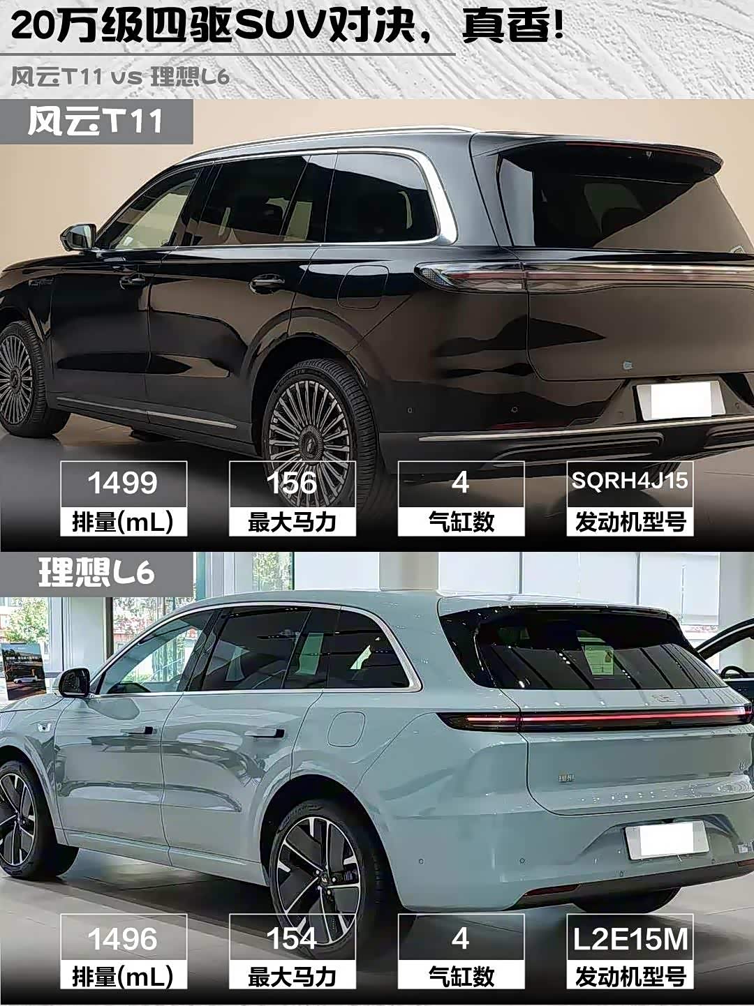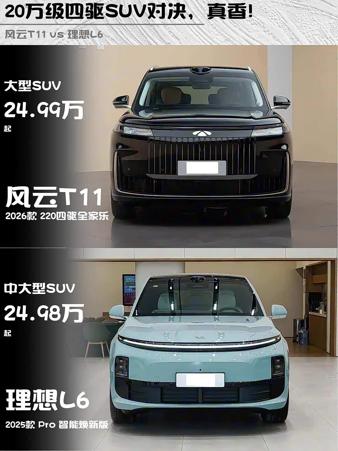 最近陪朋友看车,深度对比了两款热门增程式SUV—— 风云T11(参数|询价) 2026款 220四驱全家乐和理想L6 2025款 Pro智能焕新版,干货分享来啦!