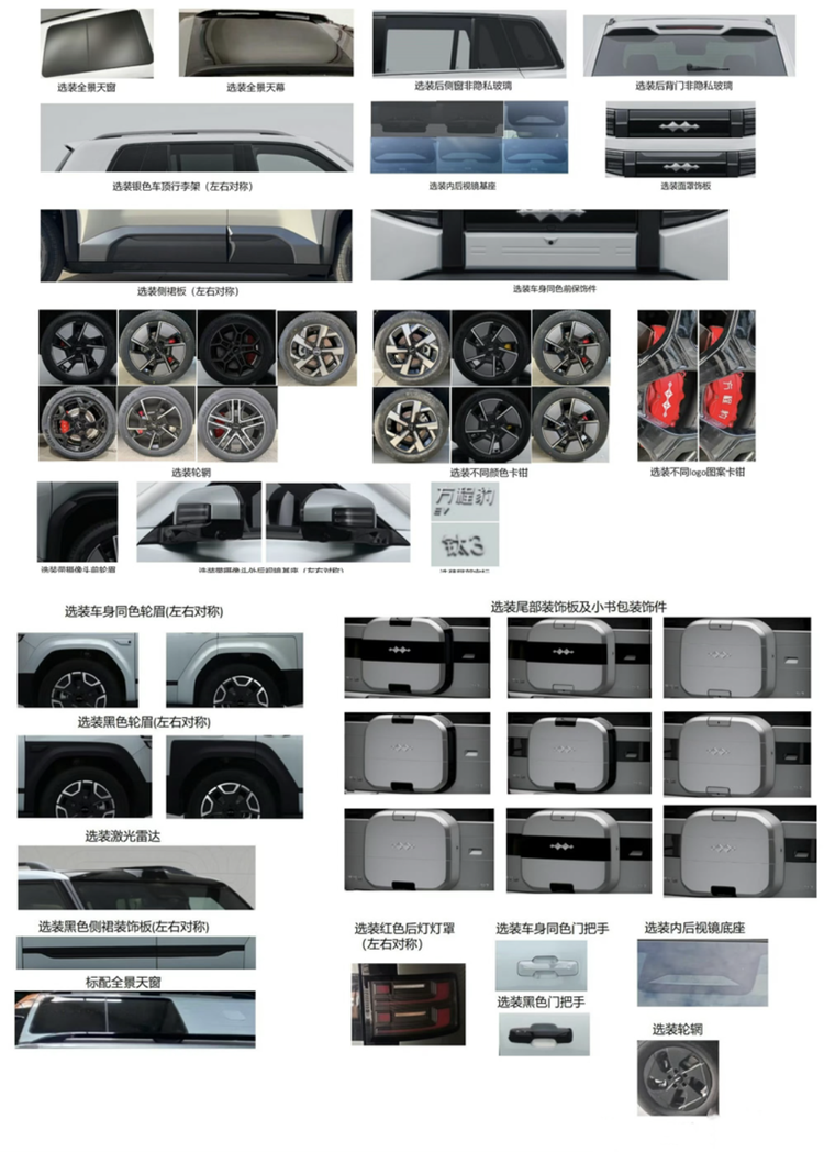 从申报图看,新款钛3的造型和现款完全保持一致,还是那种方中带圆、有点硬朗的盒子造型,辨识度很高。变化主要在细节上。它换装了一套全新样式的轮毂,而且轮毂里面配了红色的刹车卡钳,一下子就把运动感提上来了。