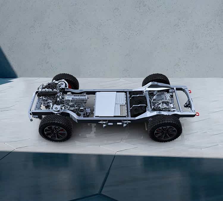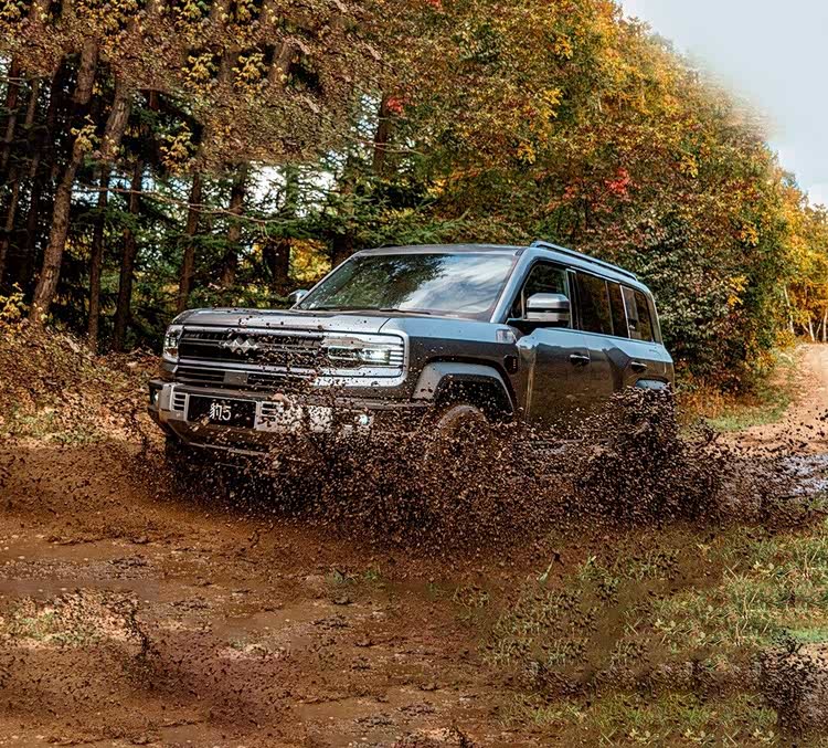 豹5是典型的“越野硬汉”配置,有非承载式车身+独立钢制大梁,这种设计就像穿了件钢筋铁骨的盔甲,抗扭强度拉满。接近角35度,离地间隙最高能到310mm,涉水深度更是达到1.2米,能轻松应对各种极限挑战,下雨天过积水路段别人小心翼翼,你能直接开着“船”冲过去。再加上标配的前后差速锁和云辇-P智能液压系统,5档高度调节让它能在城市和越野场之间自由切换,别说交叉轴、炮弹坑,就算是爬大陡坡,也能稳如老狗,是越野爱好者的不二之选。