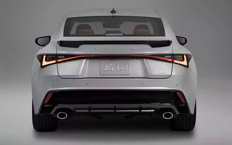 车尾采用了贯穿式尾灯组设计,灯带采用了折线设计,点亮后辨识度非常不错,还带点战斗感。尾灯上方还设计了小鸭尾,并且运用黑色饰板进行了包覆,质感进一步增强。下方采用了双边单出排气布局,扩散器的造型相对低调。从车尾看去,2026款雷克萨斯IS也采用了宽体设计,更添动感魅力。