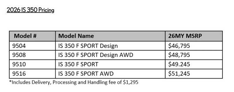 日前,我们从海外渠道获悉,2026款 雷克萨斯IS(参数|询价)已经在北美市场上市了,这是继2017 年与 2020 年改款之后,迎来的第三次大幅改款。新款车型在外观内饰方面都进行了升级,新增了雷克萨斯智能安全系统LSS+3.0,标配12.3英寸触摸屏,仅提供350车型,并有两个版本可选:F SPORT Design和F SPORT。值得一提的是,全系只保留3.5L V6 自然吸气发动机,其他动力系统如V8动力正式退出北美市场。