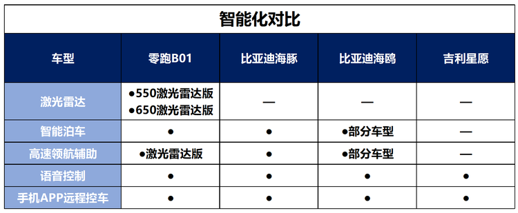 相对来说,零跑B01的智能表现让人眼前一亮,这个级别的车型还可以有激光雷达,可以说是越级的表现。