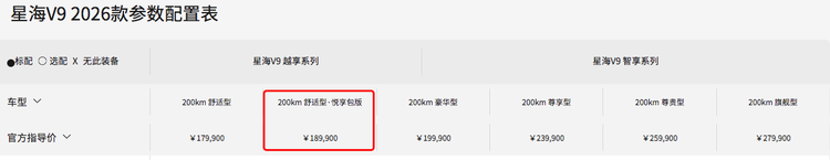 星海V9越享系列200km舒适型,仅供参考