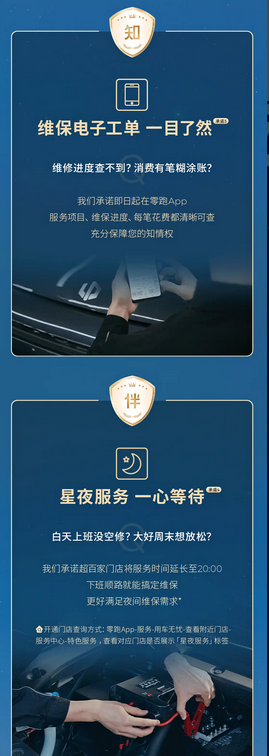 值得注意的是,零跑在服务说明中明确提及,不同门店在人员与资源配置上存在差异。这种表述并未回避现实情况,反而有助于用户在使用前建立合理预期。通过预约确认与提前沟通,用户可以更有效地规划用车与维保时间,减少无效等待。从服务设计逻辑来看,这种“可执行、可预期”的承诺,比模糊承诺更容易在实际体验中落地。综合四项服务承诺来看,零跑并未将重心放在单点服务包装,而是围绕用车周期中最常见的几个节点进行针对性优化。无论是假期出行、日常保养,还是维修透明度与时间安排,均对应真实使用场景。对于正在考虑新能源车型、且重视后期用车成本与便利性的用户而言,这类明确条款与执行规则,能够在选车阶段提供额外参考维度。