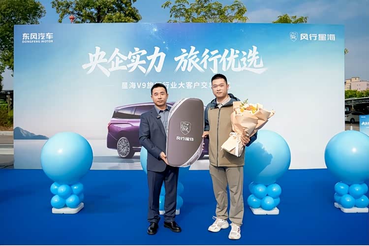 12月30日,东风风行在广州举办交车仪式,星海V9产品总监陈正宇,将象征50台星海V9的“旅行钥匙”正式交付给嘉丰出行。在活动现场,陈正宇向一直以来支持并认可星海V9的大客户表达了诚挚的感谢,嘉丰出行也对星海V9的硬核实力赞不绝口。