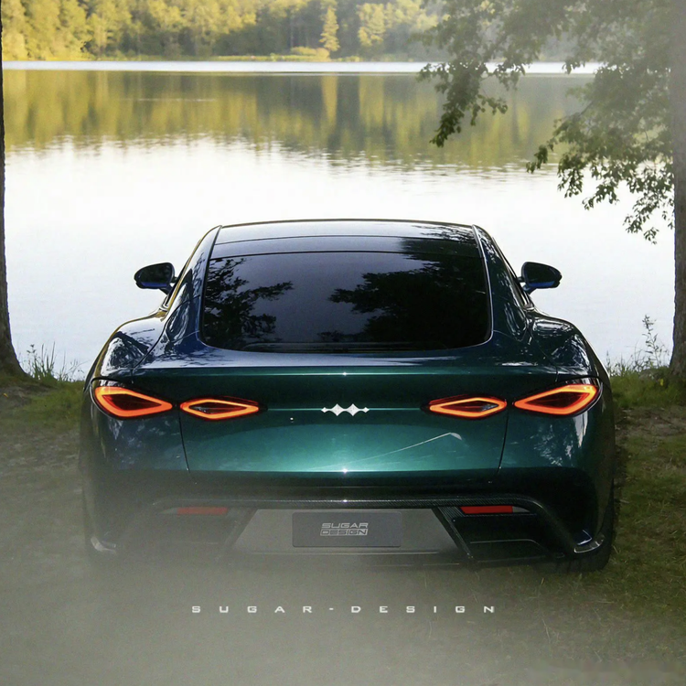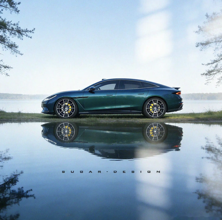 从谍照来看,该车采用了重度的伪装贴纸,SugarDesign却悄悄透露了方程豹镁 9 设计图。采用了封闭式的前鼻翼设计,正上方还配备了方向盘极具未来感的银质金属菱形车标,两侧配备了嵌入式椭圆形前大灯的设计,内部预计将会加了W样式的LED日行灯、激光大灯,极具科技感。前包围两侧两侧配备了直立式的导流槽设计,底部还有扁平化的梯形进气口装饰边框,再搭配着纤薄的碳纤维前唇,也带来了极强的侵略性。车尾的设计也个性化鲜明,溜背式的尾厢向后延伸出了一体式的扁平小鸭尾后扰流板,搭配着碳纤维黑色底部扩散器,也强化了整车的运动气息。四个水平对置的菱形尾灯加入了橙色光环,再搭配着中间可发光的尾标,辨识度很高。