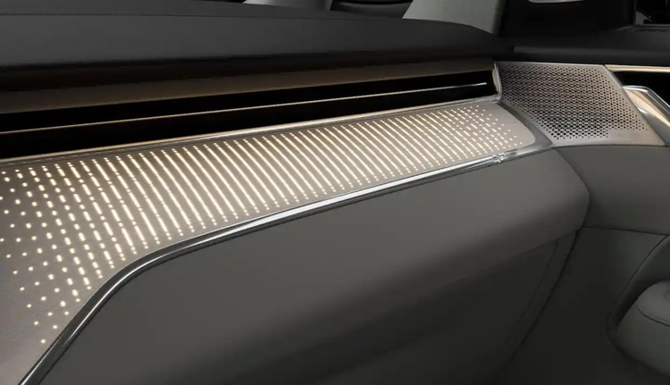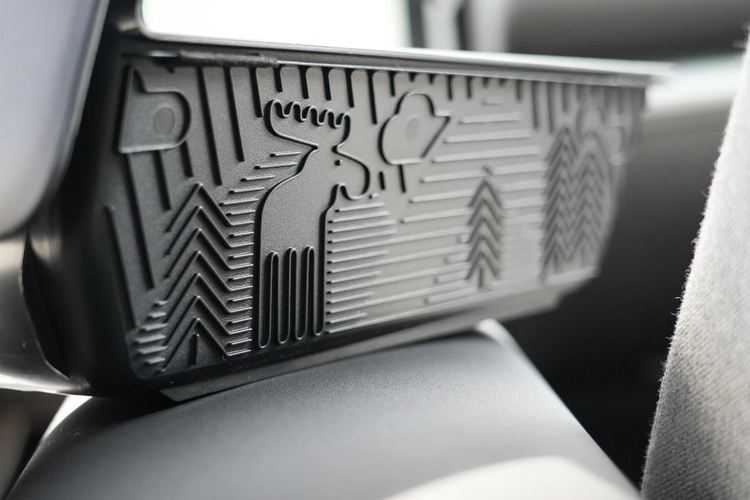 沃尔沃在塑料件上藏一些小巧思。XC70后备厢尾门上的图案让你理解这台车可以收纳什么。EX30扶手盖与XC90第三排扶手盖下面的小图案给你意想不到的情绪价值EM90竹节纹饰的最右边,有几排神秘排列,它其实是摩斯密码,解读之后代表“VOLVO”字样。