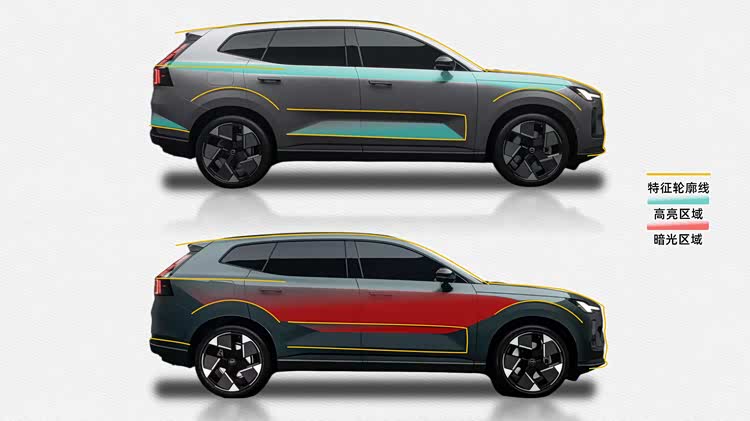 对比2025两个经典产品:i8明显奔着二代ES8的先锋人群去的。XC70的感受可油可电。具体来说XC70有几个值得关注的设计细节它试图解决了新能源中大型SUV前脸中部单调的问题:保持Volvo的logo、相比竞品增大散热区的面积。眯眯眼大灯的车看起来无神,缺少情绪,XC70的雷神之锤大灯解决了这个问题i8这种苹果风产品表面特别光滑,XC70也有这种瓷器的光滑感,但保持了沃尔沃传统的那种刀斧切削的特征。