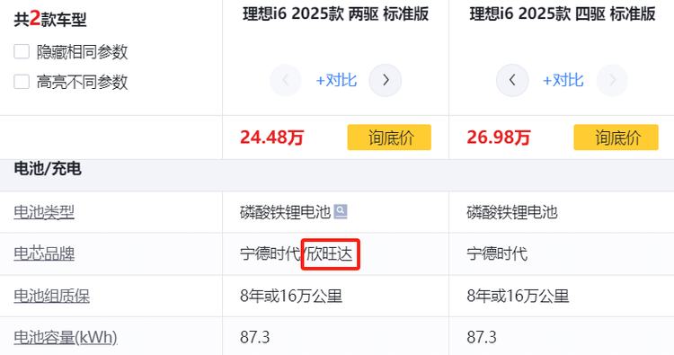 第一,理想和欣旺达好到开合资公司了,叫山东理想汽车电池有限公司,50:50 持股,理想卖得最好的 L7、L8,还有爆款 MEGA、i6,全靠欣旺达电池撑产能!尤其是 i6,欣旺达版本还特意加了延保吸引用户,就是为了抢交付节奏。