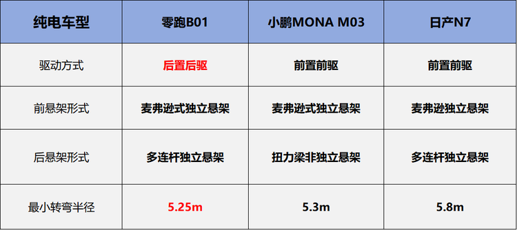 零跑B01的转弯半径只有5.25米,这么小的转弯半径,掉头很轻松,停车也要更容易。如果你车技不错,可以在封闭场地来一场漂移。说真的,20多万特斯拉的低能耗、优良操控,10万级的零跑B01全都有,说它是“半价特斯拉Model 3”不过分吧。