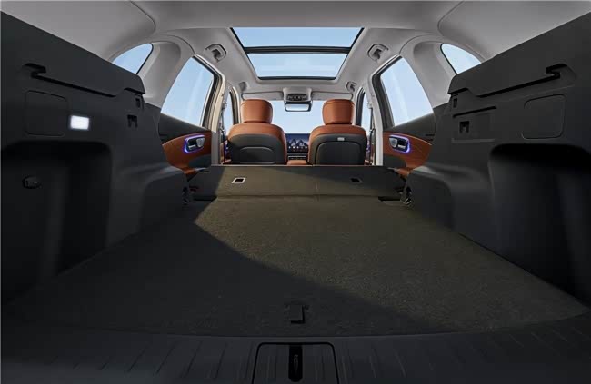车辆的后备厢容积可扩展至1453L,双层设计能轻松容纳雪具、行李箱等大件物品;后排腿部空间达到970mm,即使满员都穿着厚重外套,也能自如伸展。长途行车需要休息的时候,后排座椅可全平放倒,形成一个约3.3平方米的平整空间,为孩子营造一个舒适的睡眠区域。