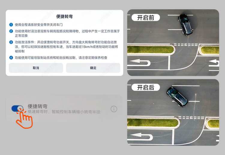 个人驾驶体验上,HUD平视显示系统新增自适应调节高度功能,调整座椅后,HUD显示高度会自动匹配最佳视觉区域,减少视线移动带来的颈部和眼部疲劳,长时间驾驶更舒适;四驱车型的便携转弯功能能缩短0.36米转弯直径,小区通行、景区窄路调头更灵活;增程版的AI-ECO功能则能平衡动力与经济性,长途自驾更省钱。