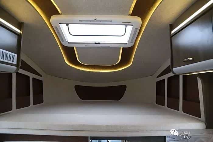 这段文字对车内主休息区进行了详细的描述,突出了其舒适性和实用性。从额顶床的设计到阳光窗的功能,再到床侧的各种设施,都体现了车内空间的巧妙利用和人性化设计。同时,通过描述可以感受到一种轻松愉悦的氛围,让人愿意在这样的环境中休息和放松。
