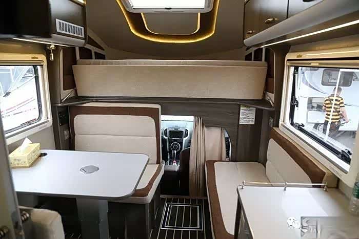 这辆越野房车展现着硬朗的气质。车身采用彩条配色,越野风格十足。整车尺寸为5990*2200*2960mm,可容纳6人荷载,4-6人休息。持有蓝牌C照的司机可轻松驾驶,不受驾照限制。