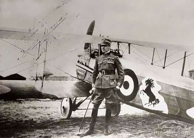 Baracca的战斗机在当时肥肠出名,侧面有一个巨大的喷画——当年他曾打落过一架德军飞机,上头有一匹跃马。后来他明白了这是斯图加特市的图腾。Baracca当时也没多想,就觉得这图腾太好看了,就直接拿来自己用上。