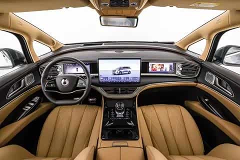 腾势D9的内饰设计更注重豪华感的营造。虽然屏幕尺寸略小,但其数量众多,且实现了车载屏幕的全面互联。腾势D9同样配备了领先的智能座舱和智能驾驶辅助系统,为乘客提供极致舒适和便捷操作体验。在内饰用料上,腾势D9选用高档真皮材质,显著提升了整体的质感和触感。
