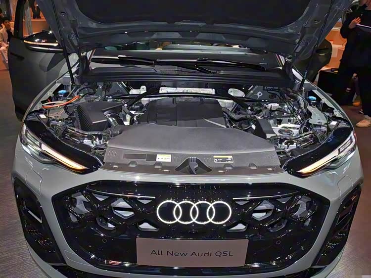 先品品这“联名款”的包装。新Q5L换上了更犀利的新装,标志性的大嘴格栅配黑化蜂窝中网,运动感拉满。最抢眼的莫过于那双“智慧之眼”——星辰矩阵大灯,不仅能智能避让对向来车,还能玩出迎宾灯语,仪式感到位。车尾的“龙鳞水韵”OLED尾灯,支持8种灯光签名,把灯厂的艺术玩到了新高度。尺寸全面加大,轴距加长38毫米到了2945毫米,后排空间更奢侈。对比宝马X3的紧绷运动感和奔驰GLC的优雅圆润,新Q5L在经典德系轮廓上,加入了更多数字化的灯光语言,显得更年轻、更会“说话”。