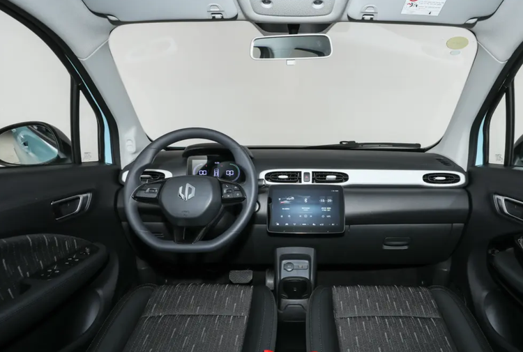 外观方面,零跑T03的竞争对手有长安糯玉米、五菱宏光Mini EV,所以在外观打造上零跑T03会显得更呆萌一些,它比同级产品的优势就是配置高,比如同级用卤素灯,但它使用LED日间灯,LED远近灯等。车标位置是充电口,大灯造型类似熊猫眼所以也是融合很多中国风的元素,前脸造型也是凹凸有型,黑色的包围带有散热孔,就外观造型也圈粉了许多年轻人,深受女生的追捧。