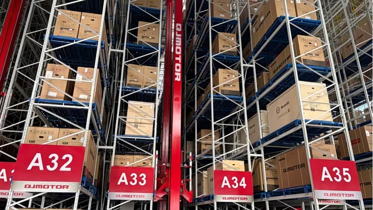 最让人震撼的是,钱江智能化工厂的仓储区已实现了无人作业模式,整装代发的摩托车,会被自动送入高达十几米的立体式存放仓储,每一台整车的入库、存放、出库,都有智能化系统统一调配,它不仅能够“先进先出”避免积压,还能精准控制库存实现及时排产,更能大幅节省时间和存储空间,更免去了繁琐的人工搬运。