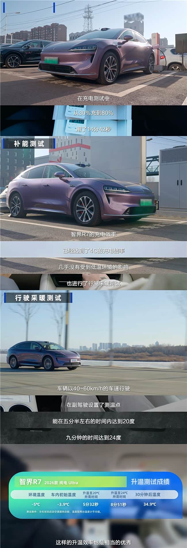 整体来看,智界R7此次冬测充分验证了其在极端环境下的综合性能与场景适应力。无论是冰雪路面的稳健操控、精准可靠的续航表现,还是高效的低温补能,都体现了其以技术为基础的整车均衡实力。对于重视冬季出行品质与安全的消费者而言,这样一款经过严苛实测检验的车型,无疑提供了更多安心与从容。