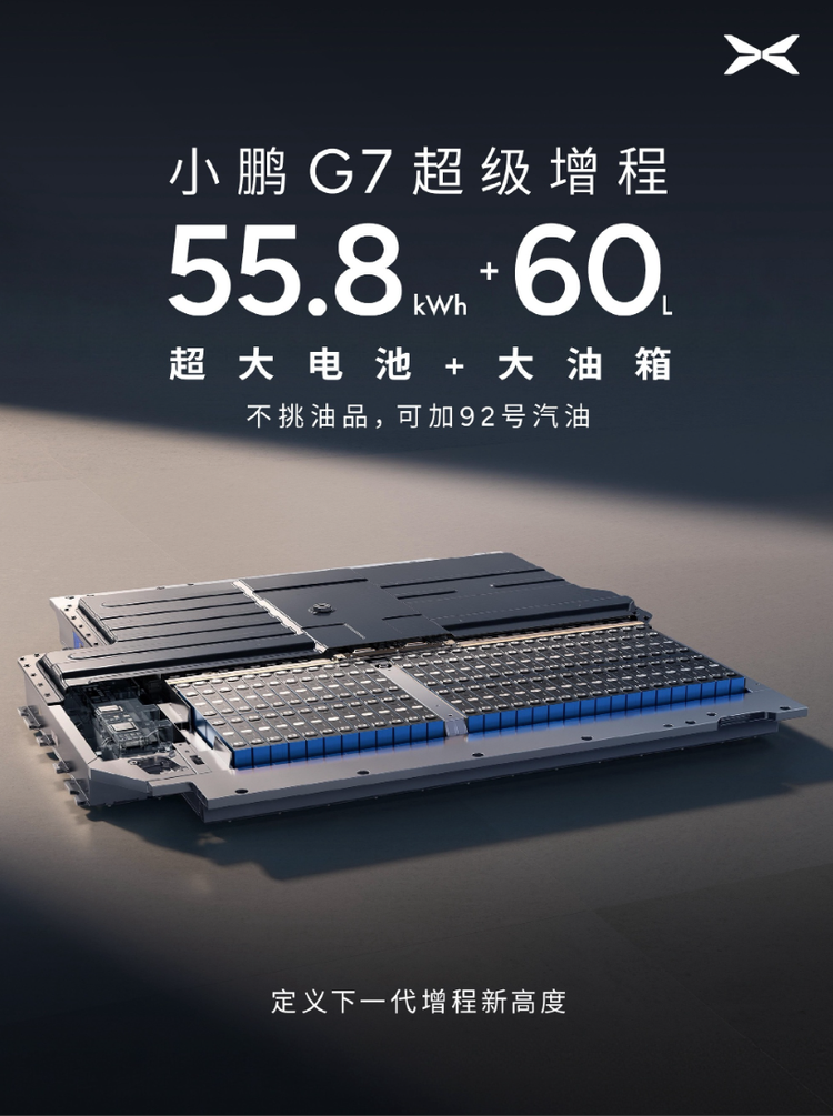 除了续航,小鹏两款新的增程车型均基于 800V 高压平台打造,配备 5C 超充 AI 电池,G7 超级增程内置 55.8kWh 电池包和 60L 油箱。