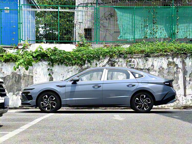 先说外观,索纳塔的设计绝对算得上“吸睛派”。前脸用了六边形中网,搭配犀利的大灯组,第一眼看上去就很有冲击力。尤其是LED日间行车灯一亮,辨识度直接拉满。车身侧面线条流畅,没有那种臃肿感,反而有种蓄势待发的运动姿态。车尾的设计也很讲究,贯穿式尾灯加上双边共出的排气(高配版),整体看起来既时尚又不失稳重。
