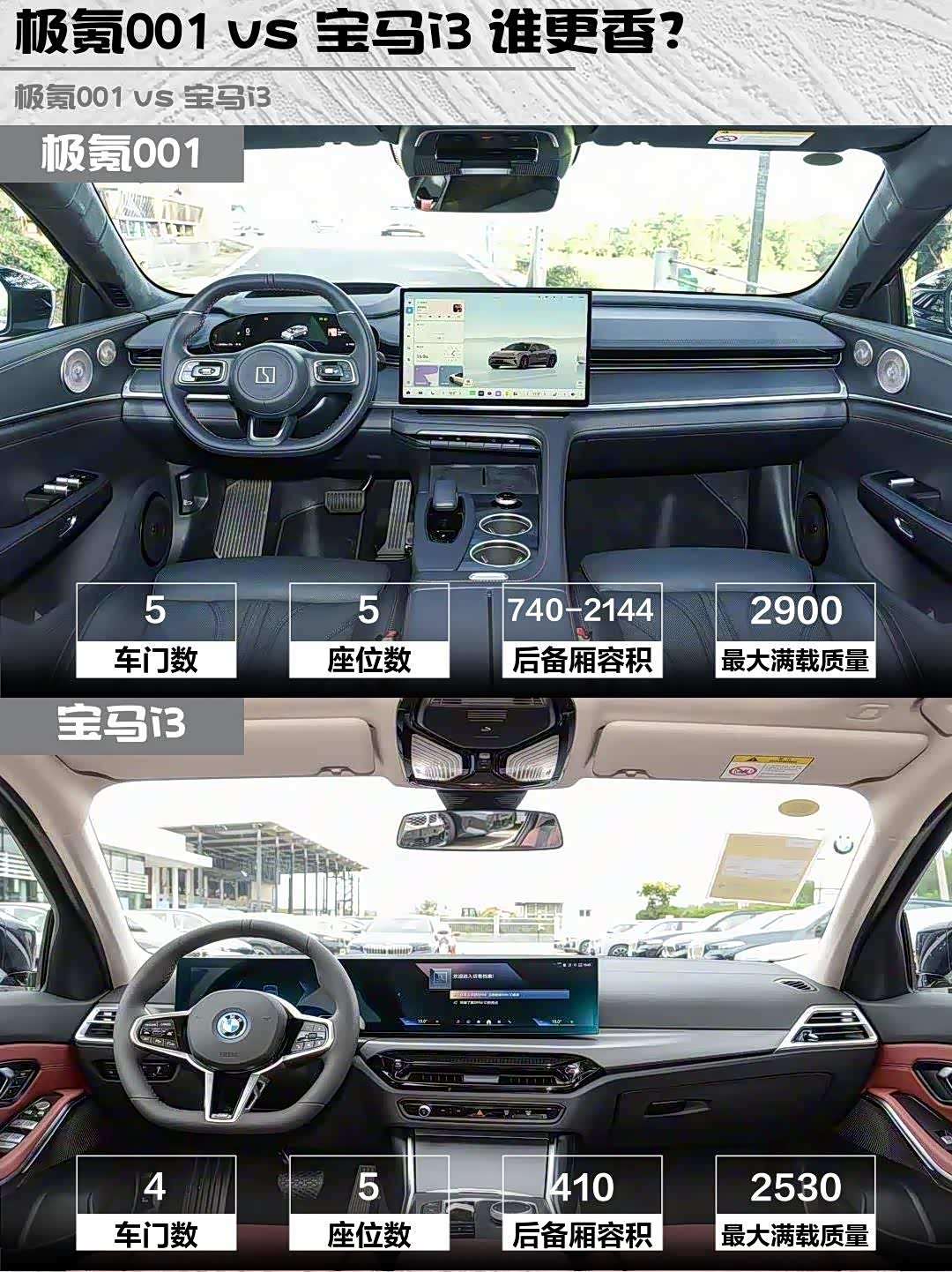 要性能炸裂+空间魔法的选极氪001,32.98万就有空悬+布雷博卡钳;追求驾驶纯粹感+品牌溢价的选宝马i3,现在终端裸车不到30万。不过极氪001车身近2米宽,老小区停车会哭...宝马i3底盘比矿泉水瓶还低,过坑要小心⚠️