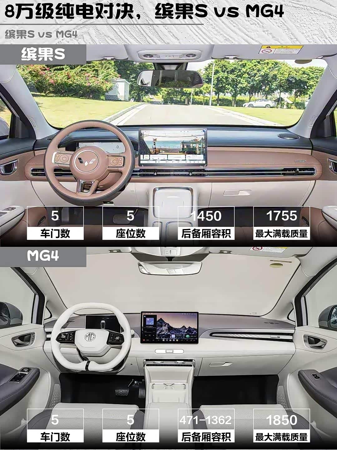 要家用大空间+颜值选缤果S,7.98万还有座椅加热;追求驾驶乐趣+配置选MG4,贵4k多了电动尾门和方向盘加热。个人最后选了缤果S,毕竟省下的钱够装充电桩了!你们会怎么选?