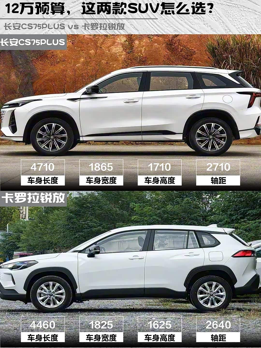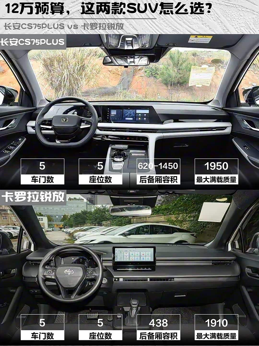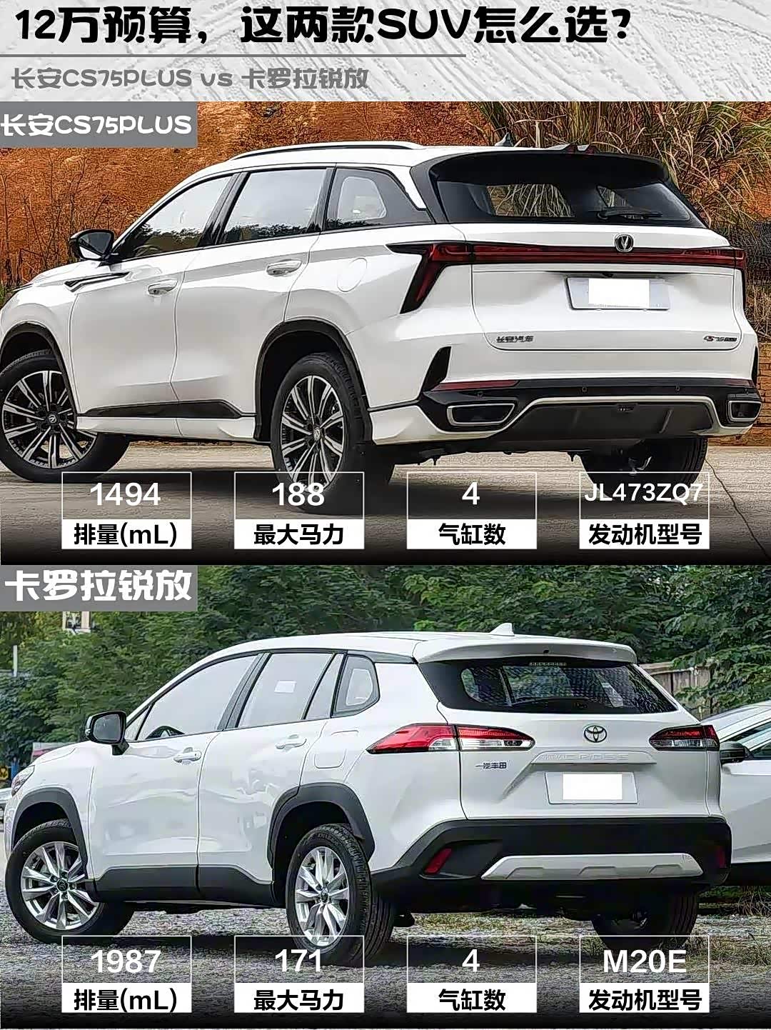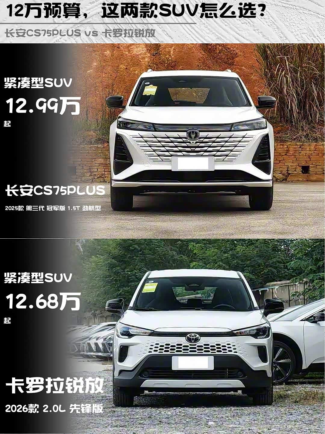 最近陪发小选车,在12万价位纠结到秃头🤯 今天就把我们实测的长安CS75PLUS冠军版1.5T劲航型(12.99万)和卡罗拉锐放2026款2.0L先锋版(12.68万)的硬核对比分享给大家——