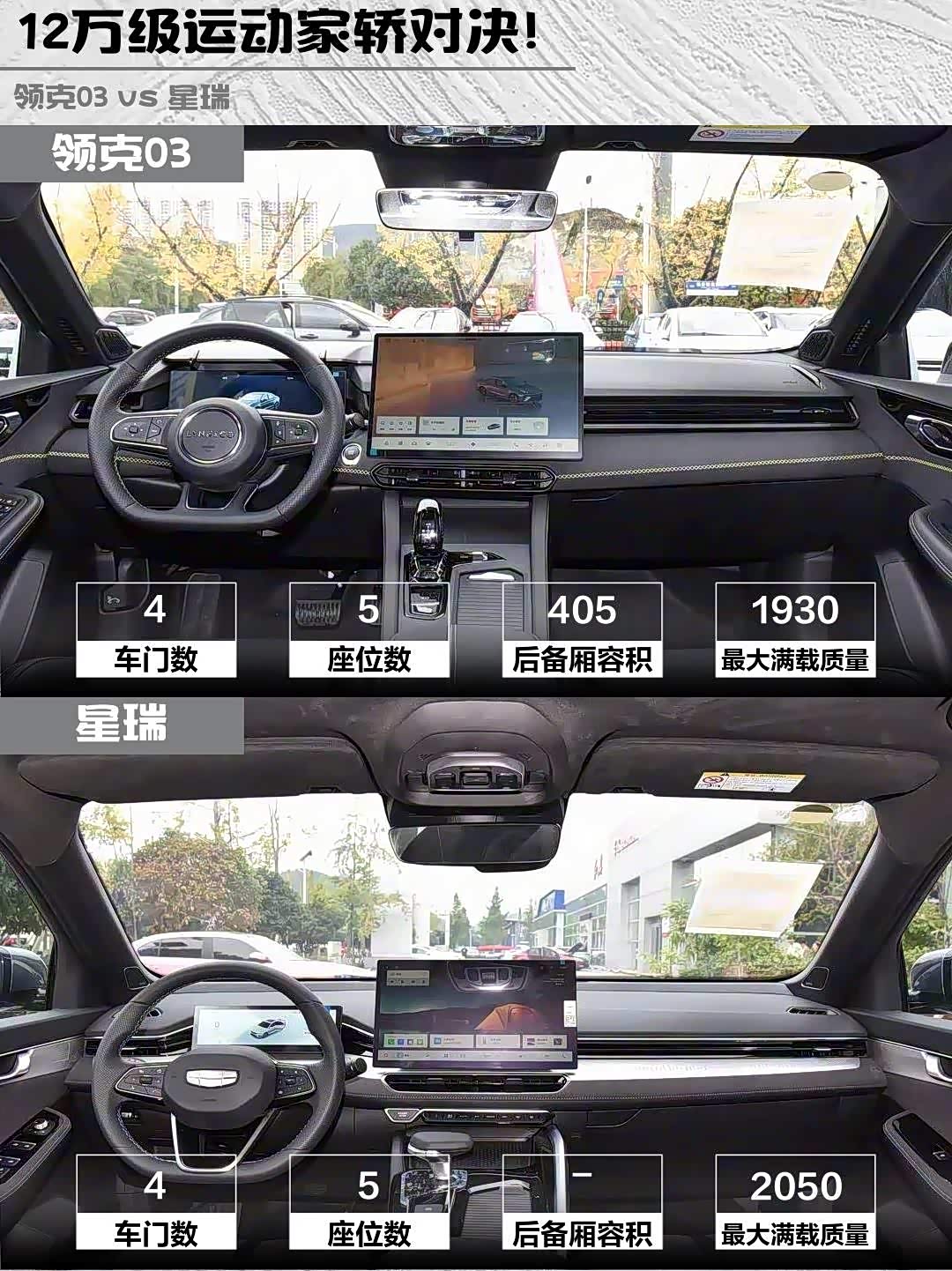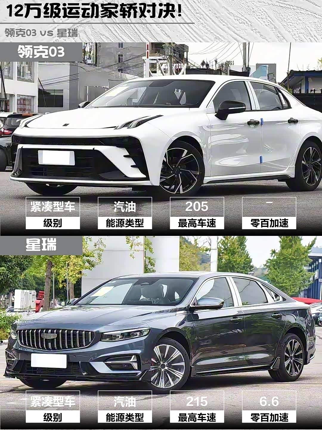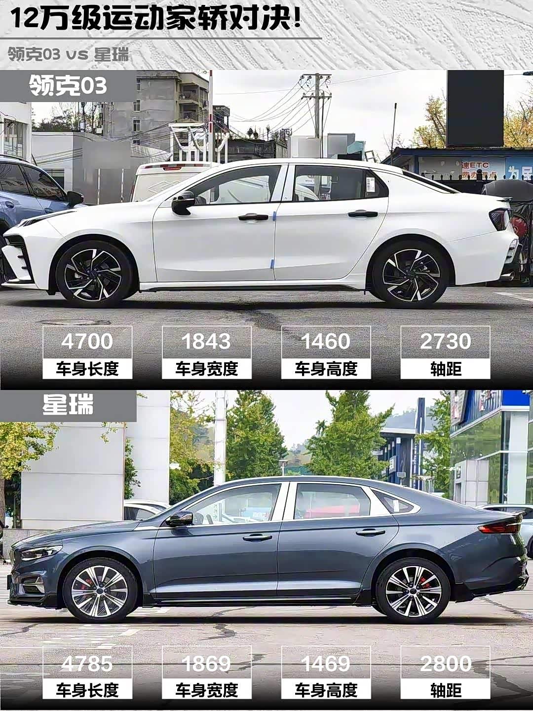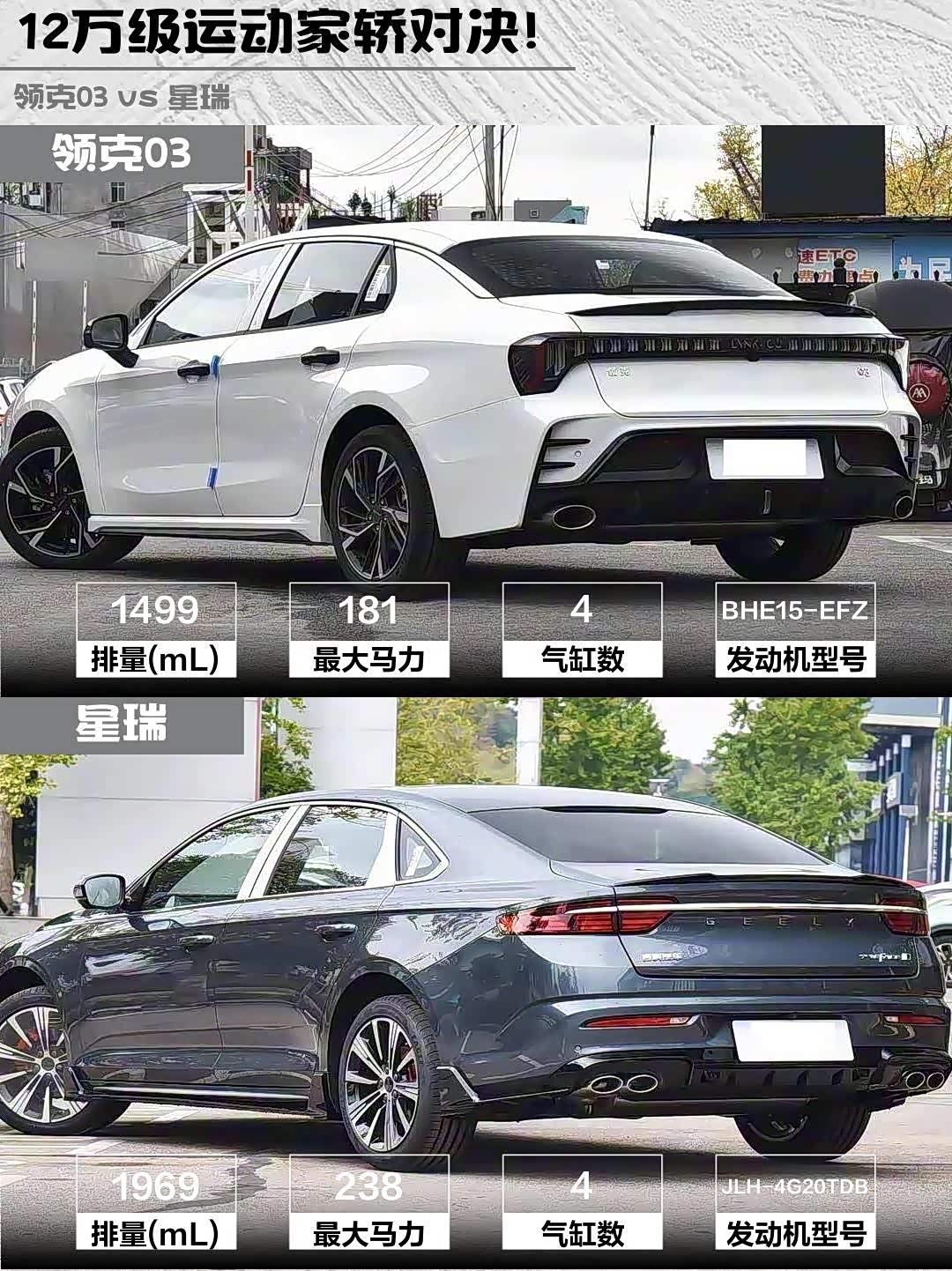 要回头率+操控爽选03,15万内最能打的"合法改装车";要家用均衡+高级感选星瑞,CMA架构的底盘质感堪比沃尔沃。最后暴论:单身选03,奶爸选星瑞,over!