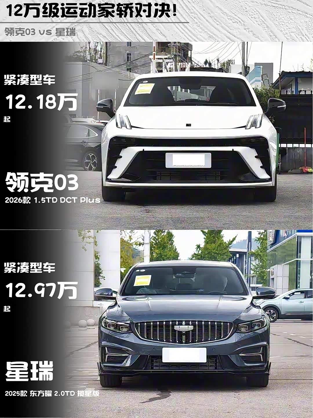 车家号·0浏览·2025-12-31 15:27 · 北京最近后台好多兄弟在问12万级运动家轿怎么选,今天直接拉出两大热门选手——2026款 领克03(参数|询价) 1.5TD DCT Plus和2025款星瑞东方曜2.0TD揽星版,实测对比干货奉上!🔥