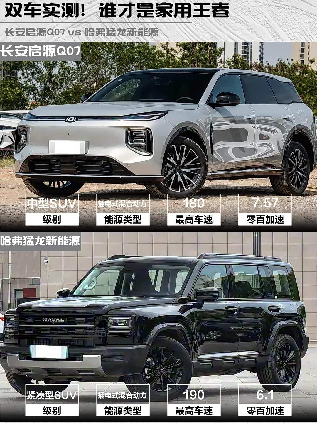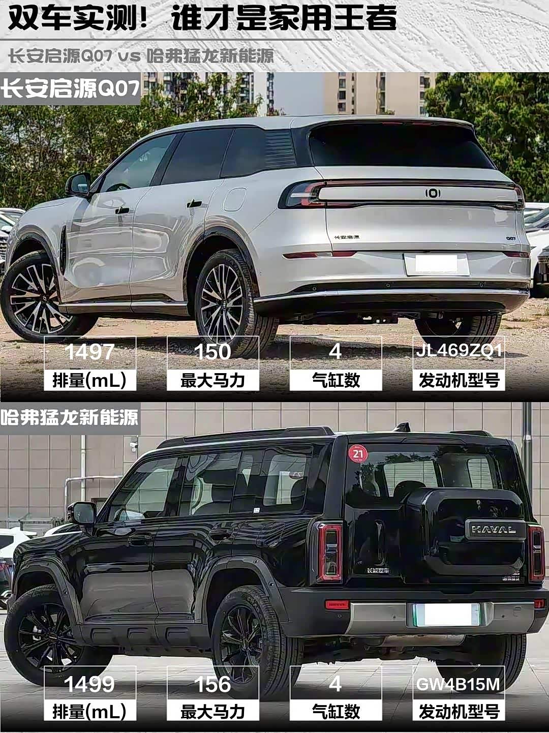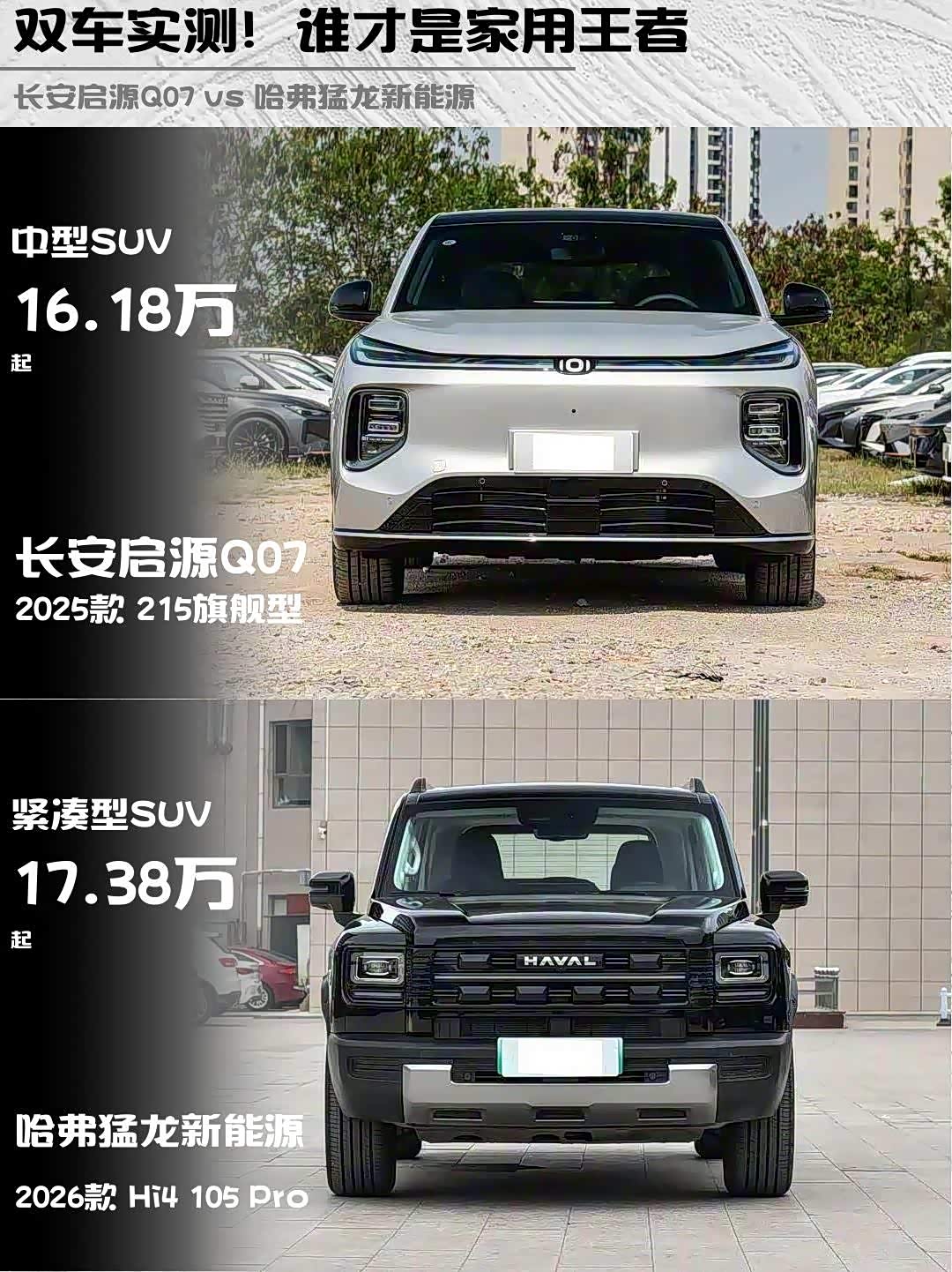 最近在选新能源SUV的朋友看过来!今天深度对比两款热门车型—— 长安启源Q07(参数|询价) 2025款 215旗舰型 vs 哈弗猛龙新能源 2026款 Hi4 105 Pro,看完这篇你就知道哪款更适合你!🔥