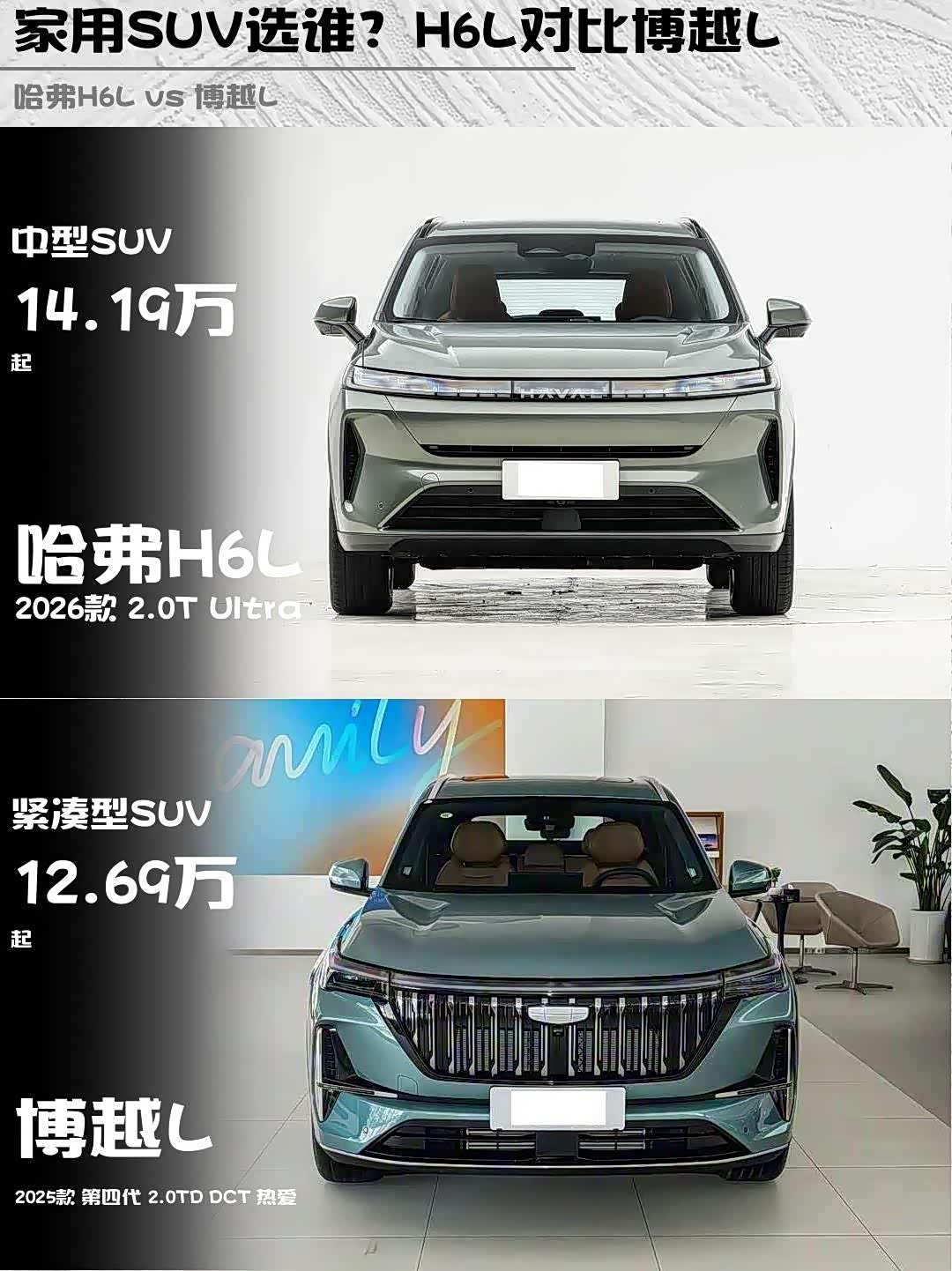 家用SUV选谁?H6L对比博越L