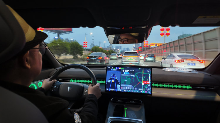 比如在拥挤的早高峰高架上,看着前车走走停停,你的脚无需在油门和刹车间频繁切换。全新深蓝S07的华为乾崑ADS SE系统已自动接管跟车,保持安全距离平稳前行。驾驶感更类人,就像真人开车一样,无论是加速还是刹车都比较平缓,重刹率更低,这样开车时平顺性就更好,自然乘坐舒适性会更好,坐起来也更舒服,而且感觉更有安全感。