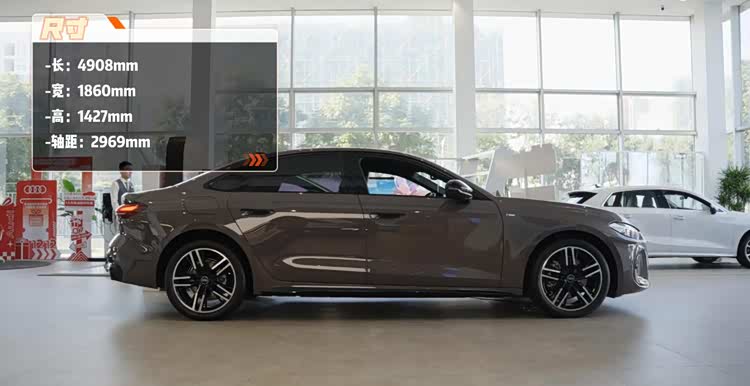 它的配置方面,像全车无钥匙进入、后视镜电动调节、全景天窗、L2级辅助驾驶等等这些好用的配置都给你了。它的车身尺寸也不小,已经快要够到中大型车的门槛了,长度是4908mm,宽度有1860mm,高度是1458mm,轴距为2969mm。实际的观感蛮有气势的,内部空间也比较宽裕,家用是绰绰有余的。全新奥迪A5L的尾部设计也非常漂亮,尾灯虽然是现在流行的贯穿式风格,但奥迪别出心裁的用了很多竖向的灯条进行点缀,整体颜值非常高,也很有辨识度,夜晚点亮之后相当显眼。颜值出色配置够用,预算不多选它蛮合适。