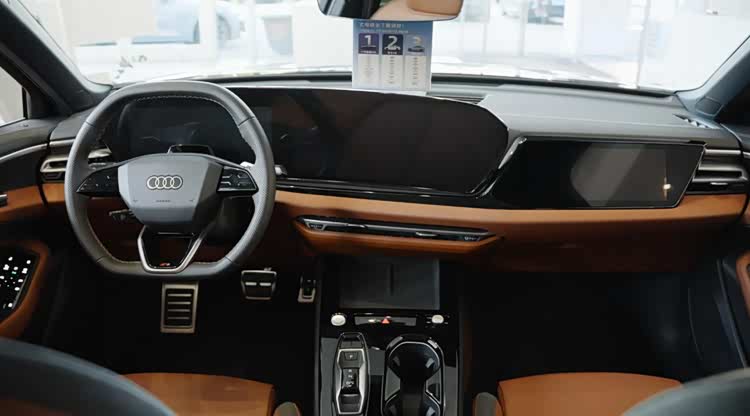 喜欢油车的便利性,又眼馋华为的辅助驾驶能力,它就是你最好的选择。我们来到车内,它的方向盘设计也是挺好看挺小巧的,三幅式的设计却不显老气。整体的运动气息还是非常足的,像实用性很强的大屏它也给你配上了,而且还不止一块,主驾是11.9英寸,中控是14.5英寸,副驾也有一个娱乐屏,尺寸是10.9英寸。除此之外它还有一个13.1英寸的HUD抬显,前排40W无线充电,以前的燃油奥迪车哪有这么富裕呀对吧。比较遗憾的是它依然有燃油车的缺陷,比如后排地台有一个很高的隆起,坐中间的乘客长时间乘坐的舒适性一般。