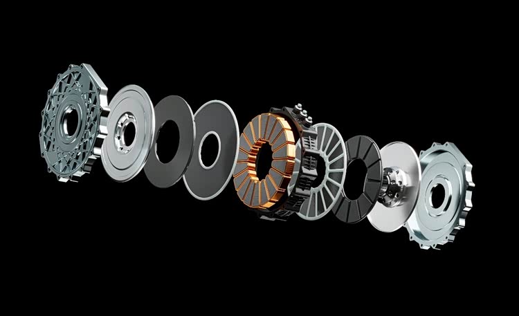 而与之相对应的轴向磁通电机,因为永磁体产生磁力线沿轴向流动,且转子和定子呈现出两个扣在一起的圆盘,所以由俗称。目前,这种电机在汽车产业还应用较少,目前主要是法拉利、兰博基尼的少数混动跑车有应用这种构型的电机,梅赛德斯-奔驰似乎计划在未来的纯电汽车中应用该类型电机。